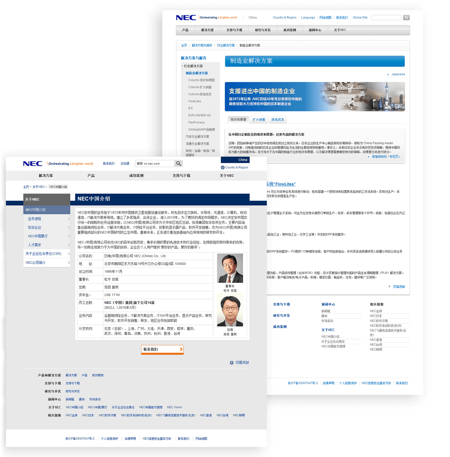 星空(中国)为NEC及旗下子星空网·官方端网站建立中文网站群,实现后台统一管理,同时规范网站群WEB视觉识别体