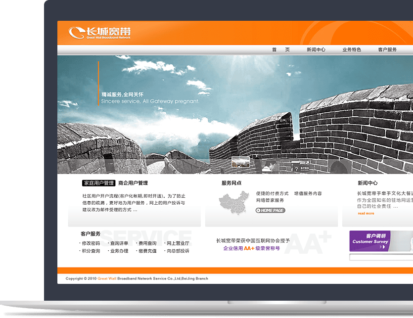 星空(中国)以用户体验为核心,为长城宽带规划,设计,开发品牌官网,助力长城宽