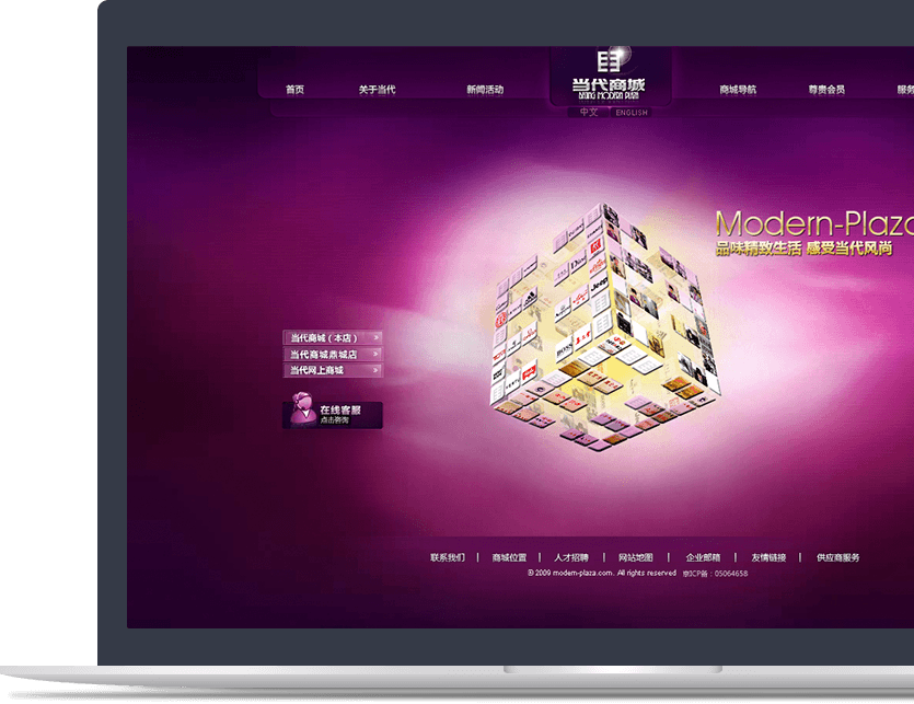 网站主视觉采用交互技术,有效传达当代商城整体品牌形象。