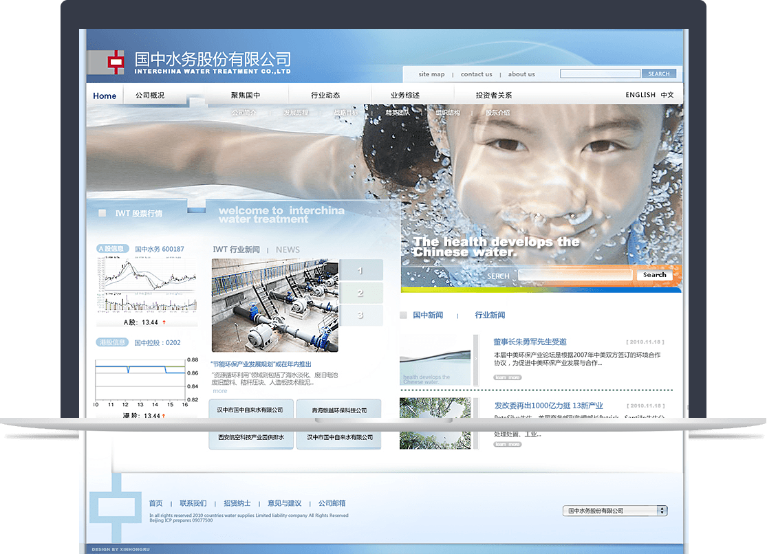 星空(中国)持续为国中控股、国中水务打造官方网站,在兼顾同一体系内企业的视觉统一性的基础上,通过不
