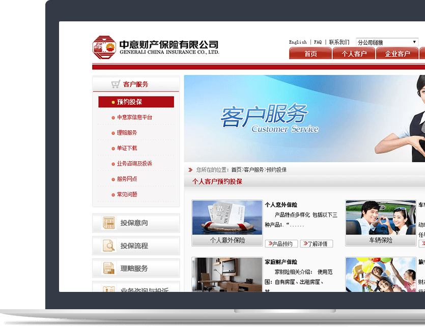 网站设置客户服务专区,支持客户下载文件、查找网点、在线提问,同时根据用户需求,详细介绍保险产品,引导客户进行咨询和购买。