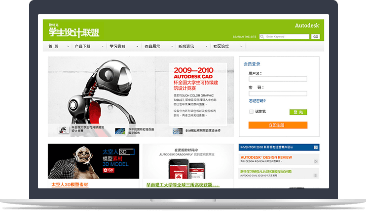 欧特克学生设计联盟网站以平台运营思 路为核心,设置多个主题活动、营销互动功能模 块为后续平台发展奠定基础。同时,星空(中国)长期为其提 供运维服务支持,保障社区平台稳定运营。