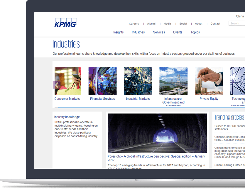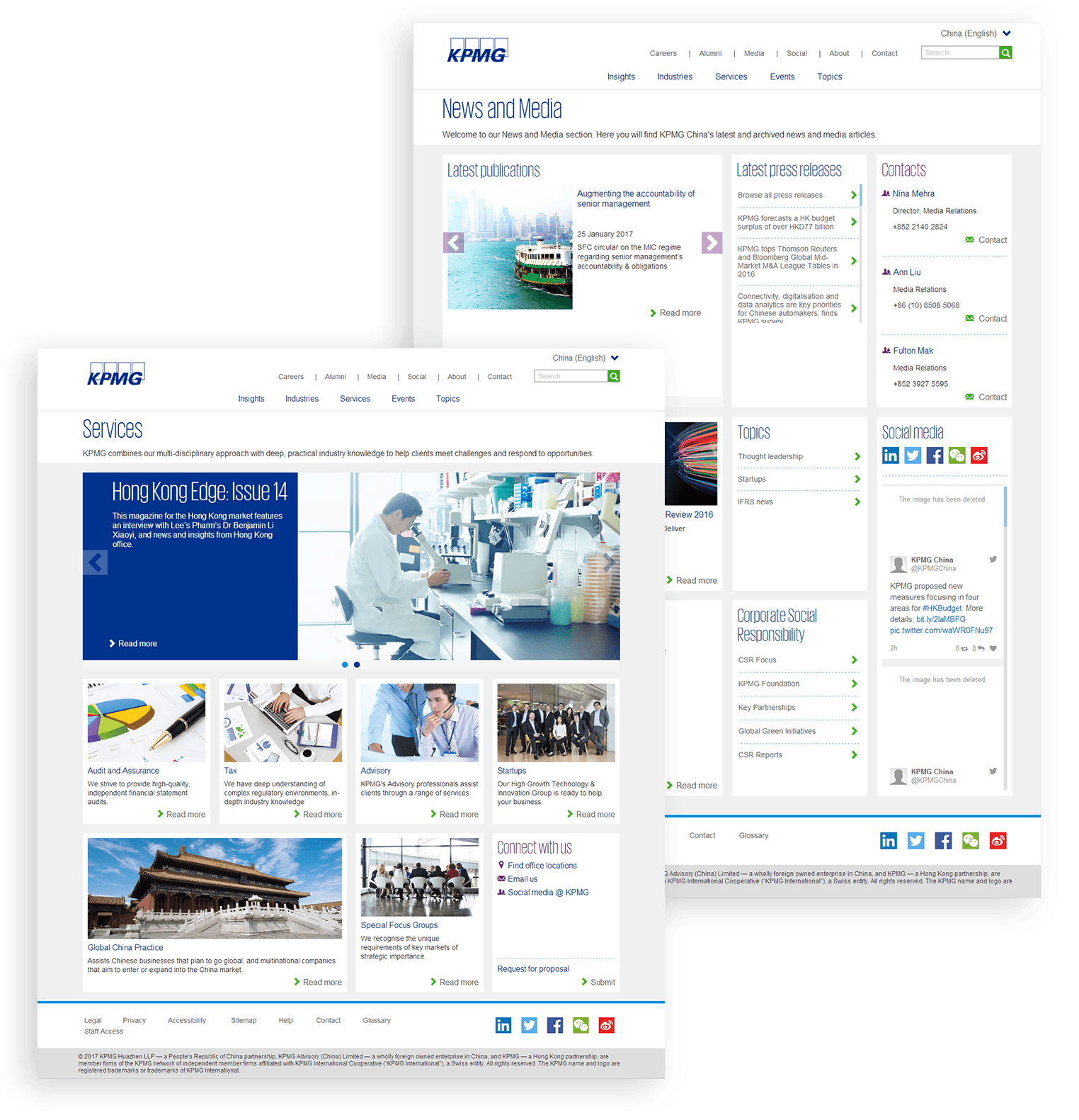 星空(中国)结合会计行业做事严谨、信息明了的特点,为毕马威打造以“信息”为主体的品牌官网