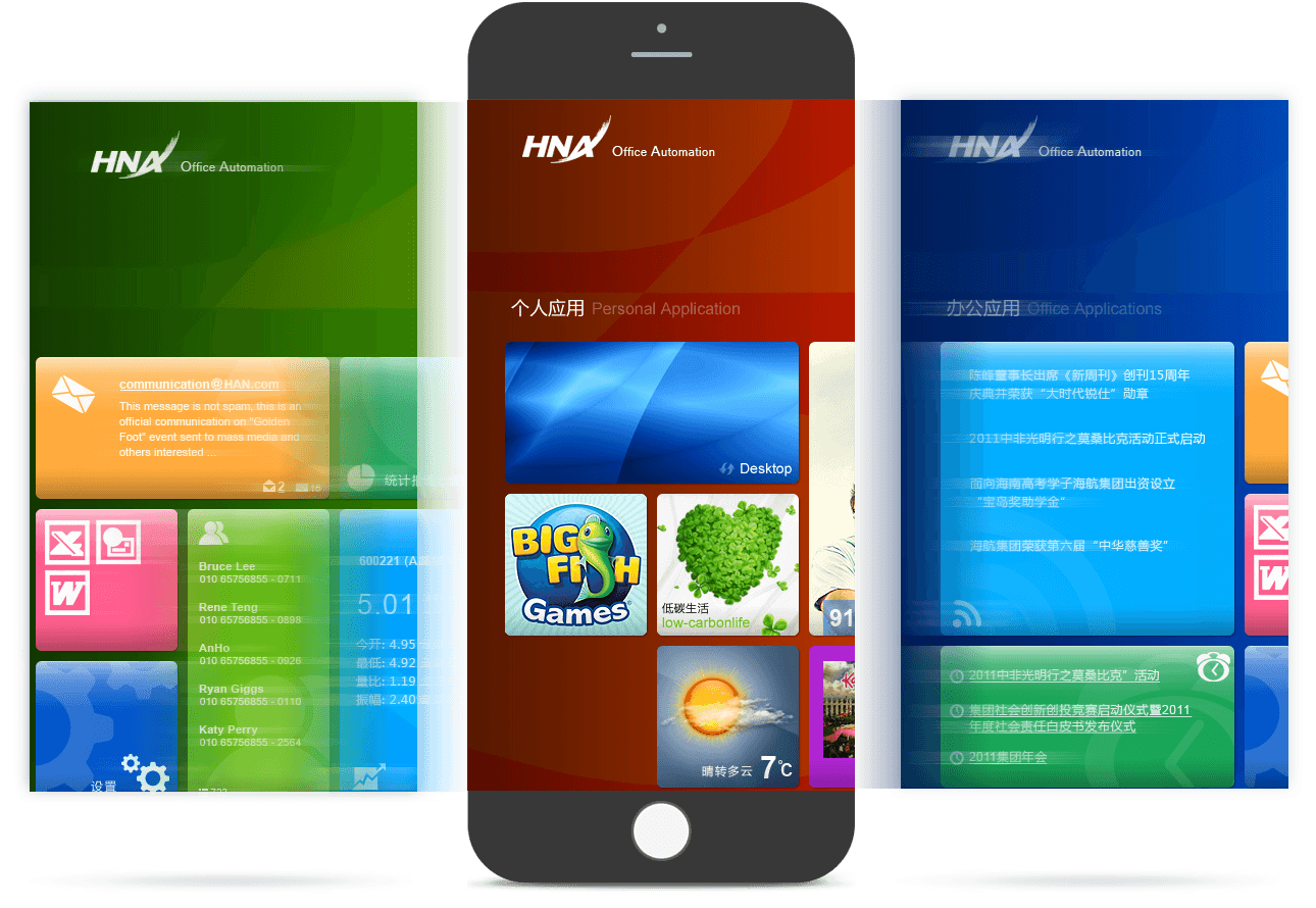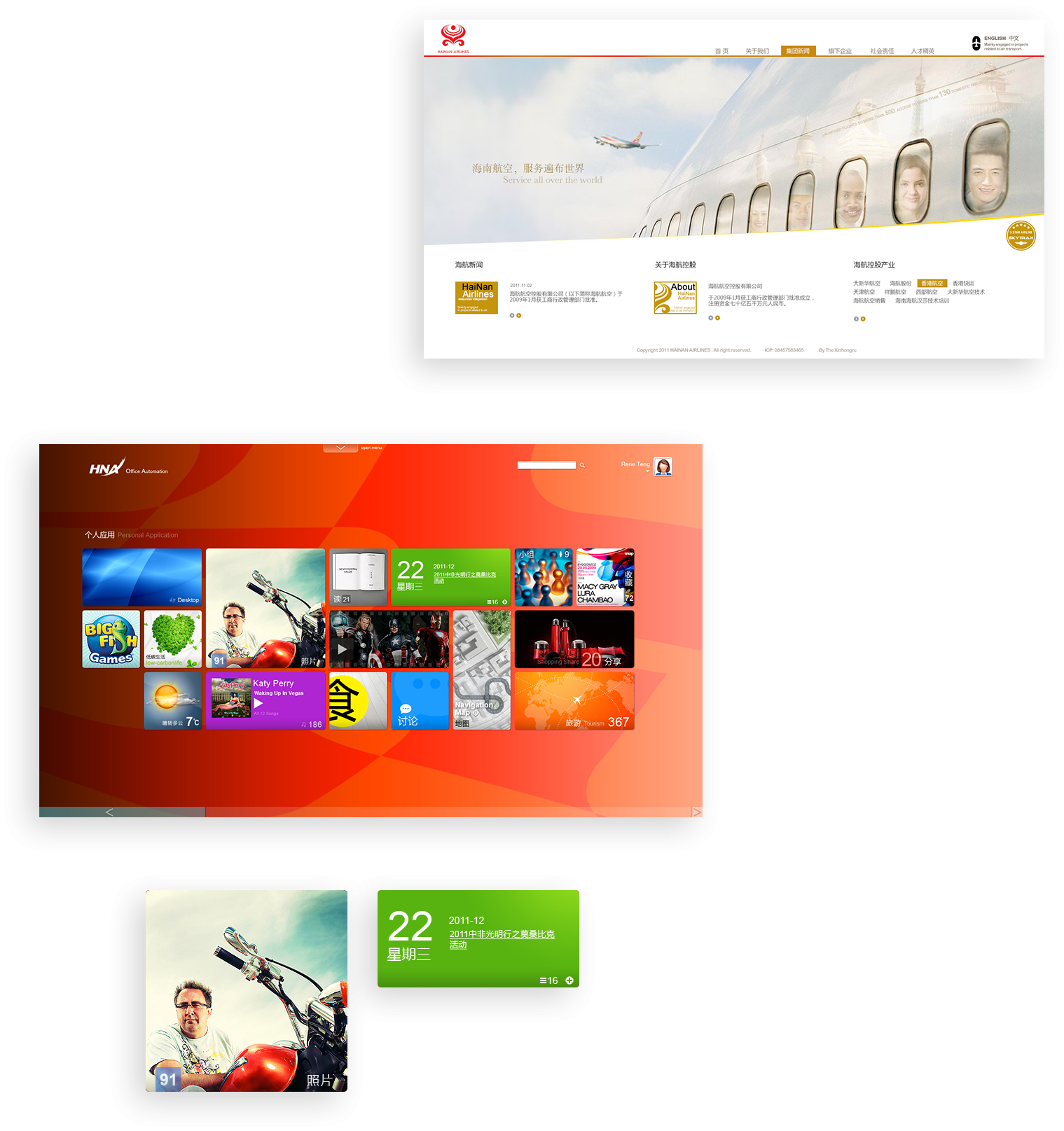 星空(中国)重新梳理海航集团内部繁杂的信息化办公需求,将所有办公功能进行模块分类,简化办公流程, 打造扁平化全新内网,成为国内首批采用扁平化设计的内务网站。