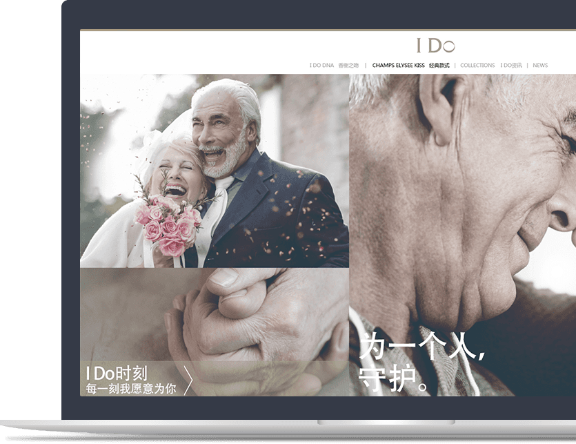 从结构布局、色彩搭配,到文案创意、图片应用, 每一个环节都倾心设计,以近乎苛刻的要求让页面精益求 精。这是I DO 和我们的精工主义。