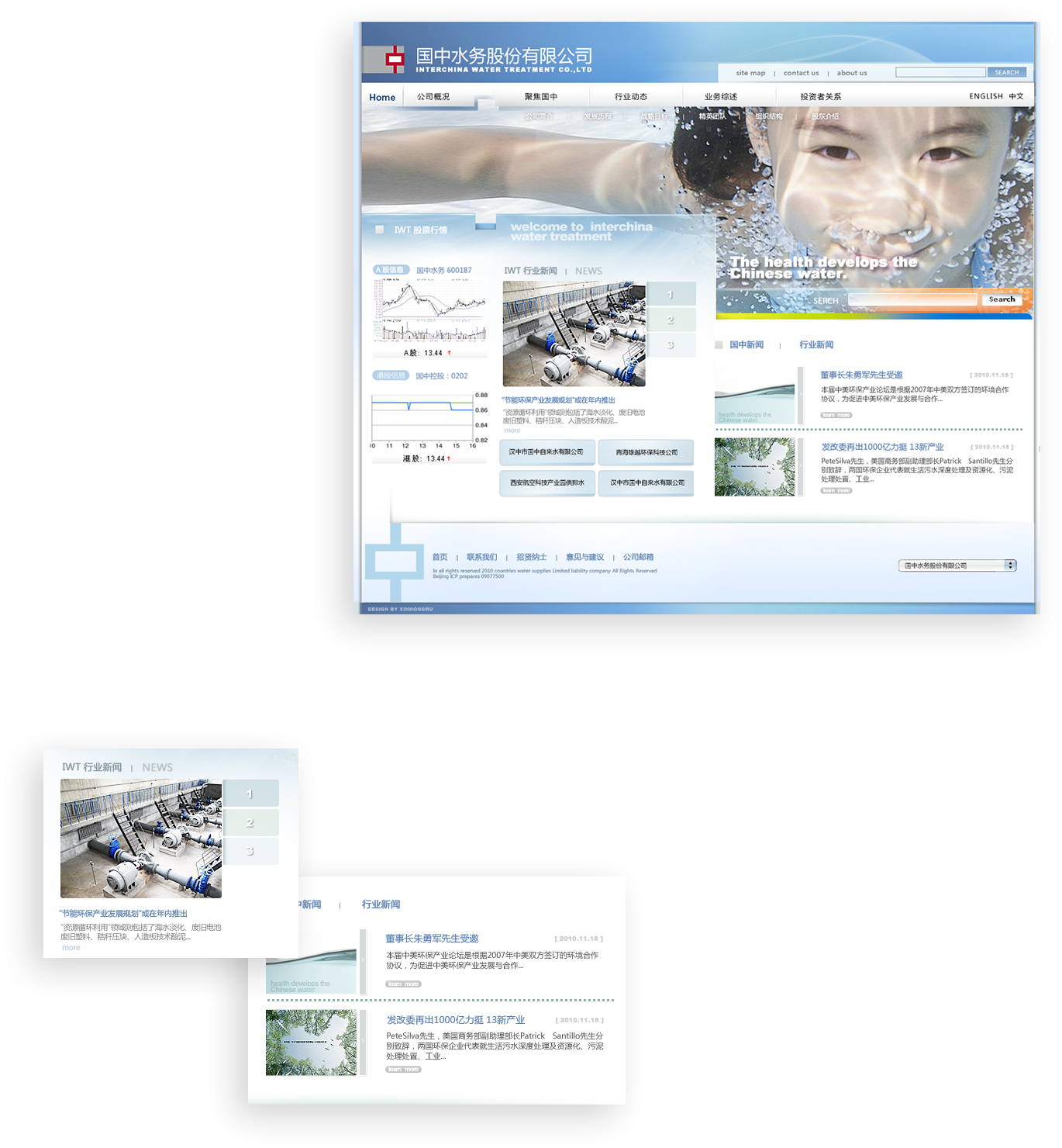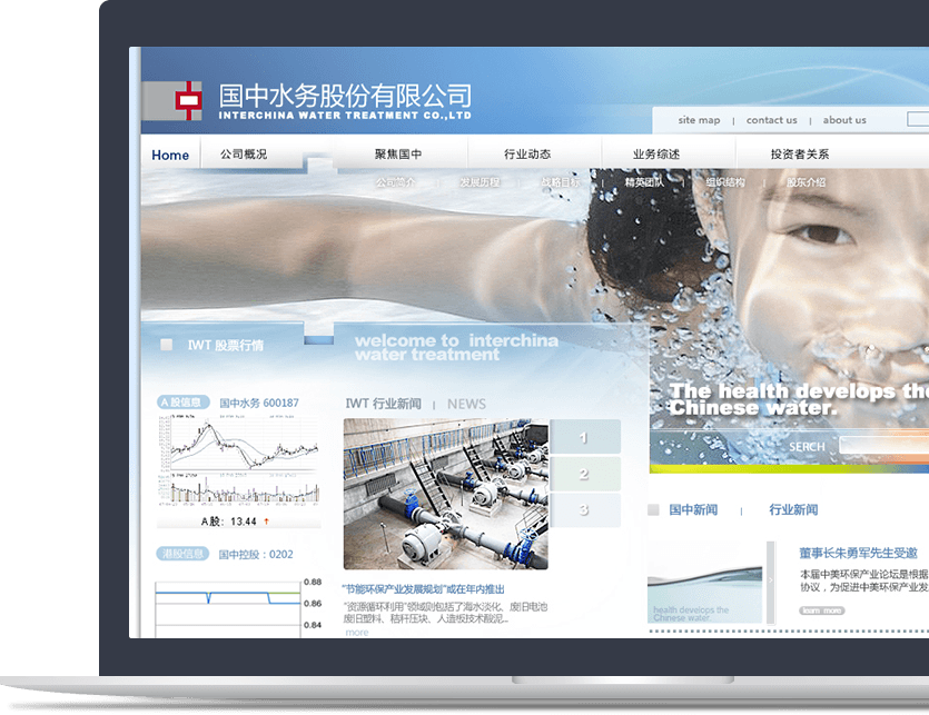 星空(中国)持续为国中控股、国中水务打造官方网站,在兼顾同一体系内企业的视觉统一性的基础上,通过不 同的表达方式塑造个性化的品牌官网