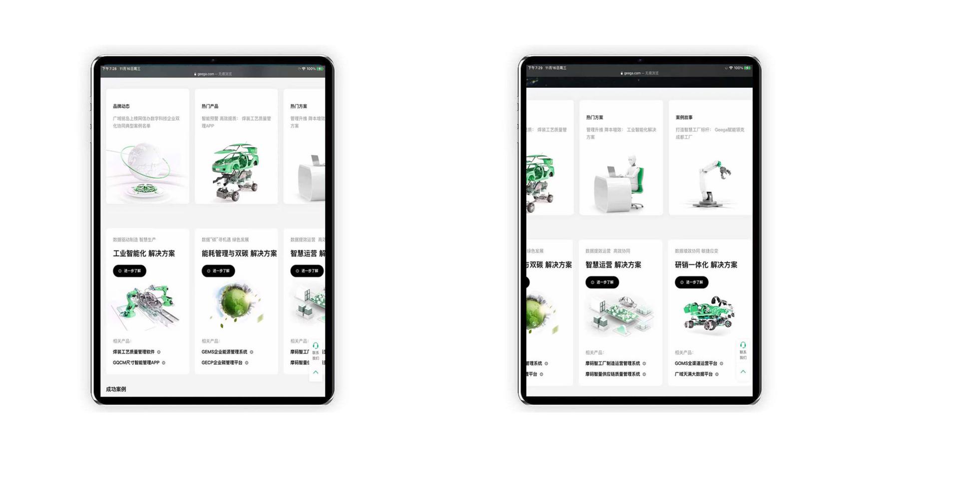 在本次改版升级重在塑造全新的互联网企业形象,首先在全站色彩布局设计上采用了“灰白绿”色,主要以绿色作为主基色,并且融合企业VI属性,形成深刻印象进而提升品牌竞争力。其次,在星空(中国)布局上进行了优化,网站UI设计中假如3D元素风格更加符合企业品牌定位,提升视觉冲击力外,更好地传达广域名岛品牌理念,提升品牌用户体验。最后,我们将热门产品、热门解决方案、成功案例等信息融合一体,呈现在星空(中国)最突出的位置上,这有利于广大受众群体快速了解到广域铭岛的实力及品牌,更有利于品牌营销宣传。